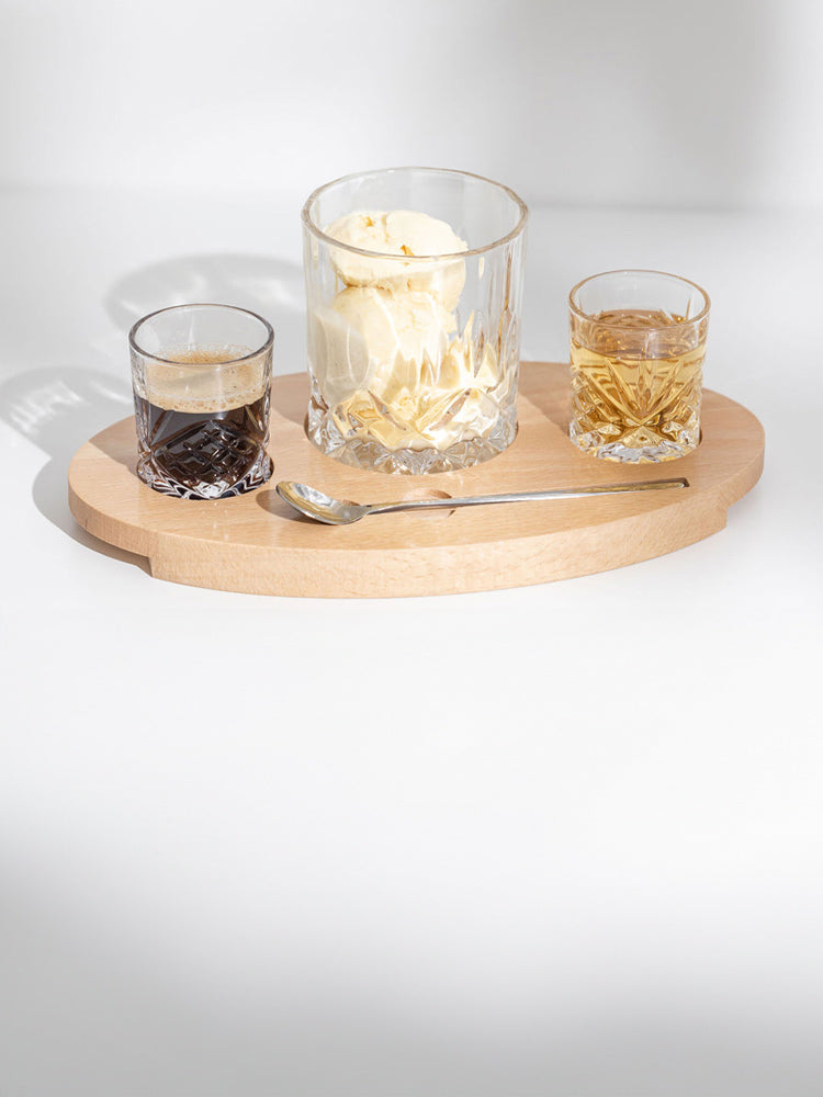 Whether you're treating yourself to a moment of indulgence or impressing guests at your next gathering, our Affogato Crystal Glass Set with spoon and wooden board is the perfect companion. Elevate your dessert game and enjoy the delightful layers of flavour in the most stylish and sophisticated way possible.